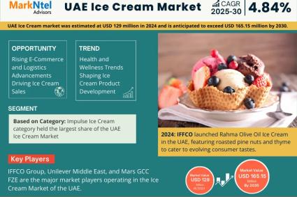 The UAE Ice Cream market is anticipated to grow at a CAGR of around 4.84% during 2025-2030. The Global UAE Ice Cream Market is significantly growing due to several growth...
