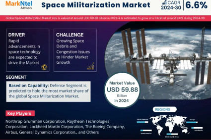 The Global Space Militarization Market size is valued at around USD 59.88 billion in 2024 and is estimated to grow at a CAGR of around 6.6% during the forecast period,...